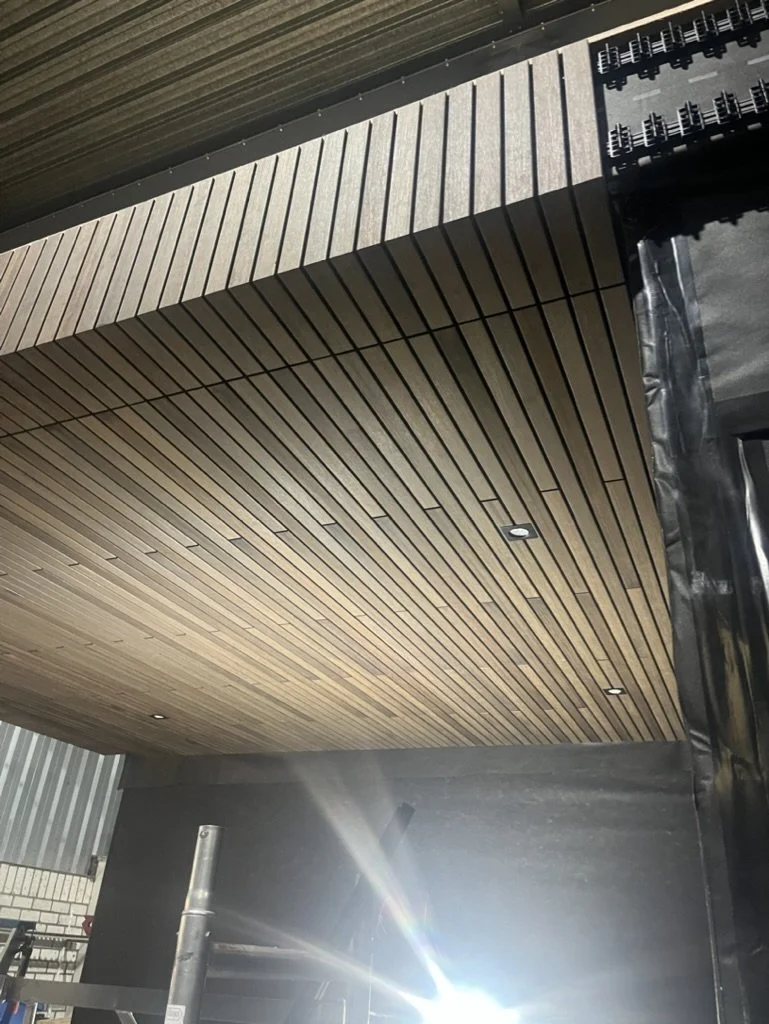 Alle bamboe latten zijn stuk voor stuk nauwkeurig verstek gezaagd en met watervaste lijm bevestigd, voor een perfecte aansluiting en een strakke afwerking. Waar de meesten zouden afhaken, zeggen wij ‘ja’. Voor ons bestaat er geen compromis: ieder detail krijgt de aandacht die het verdient, zodat het eindresultaat niet alleen functioneel is, maar ook een toonbeeld van precisie, durf en vakmanschap.
